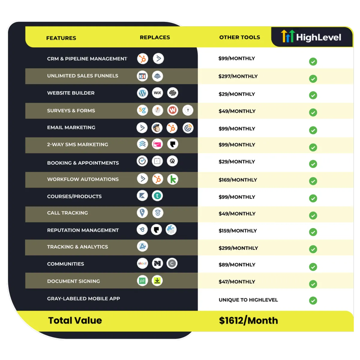GoHighLevel consolidates essential business tools into a single, integrated platform.